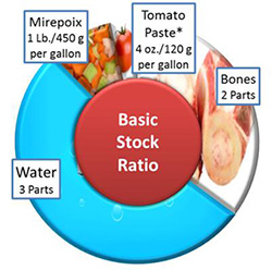 Ratios are a bridge from the culinary lab to the professional kitchen. They are a valuable communication tool for teaching because they require students to be actively engaged in the learning process. They open up a dialogue between instructor and student to review techniques, ingredient characteristics, variables in the cooking process, variations and substitutions and tips and nuances of a preparation. A ratio opens student’s eyes to creative possibilities and helps them evaluate the cooking process using skills of observation: sight, sound, texture, color, flavor and consistency.