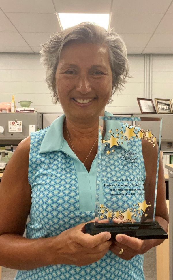 Frederick Community College’s Hospitality, Culinary and Tourism Institute Manager Elizabeth DeRose received the 2023 Entrepreneurship Award from Kendall College National Louis University and the Center for the Advancement of Foodservice Education (CAFÉ).
